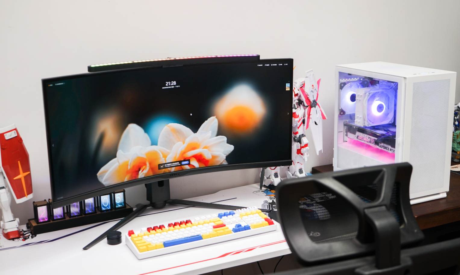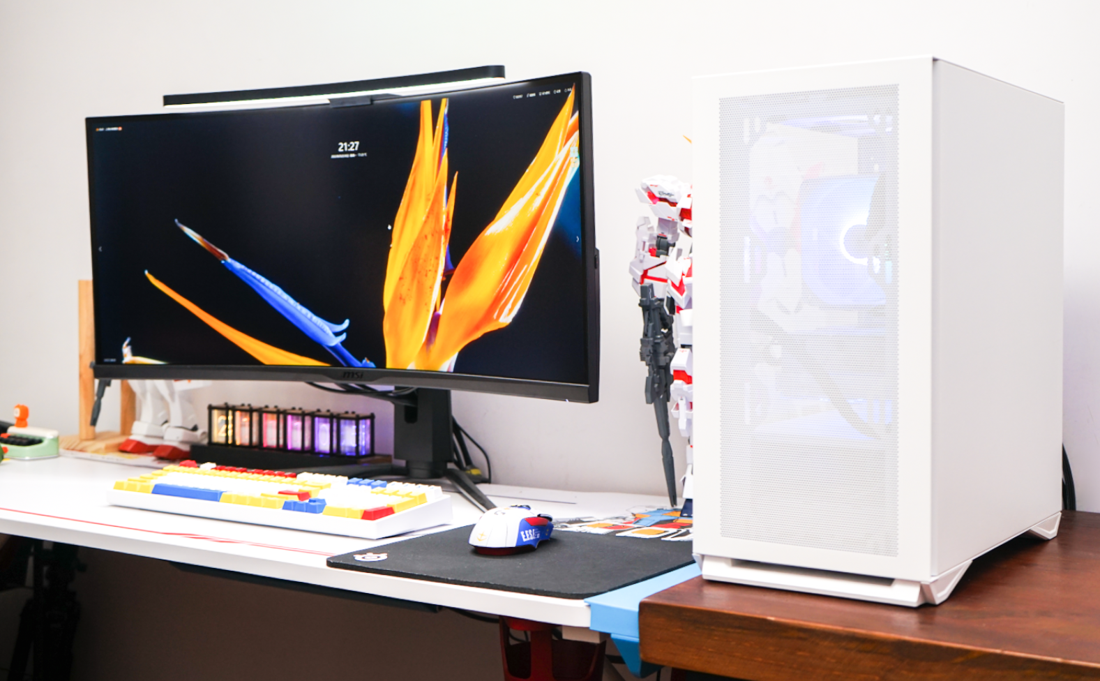 与我的显示器微星MPG ARTYMIS 343CQR月神来个合影。可以看到aigo YOGO M2高性能版要比这款34英寸的曲面显示器小很多。