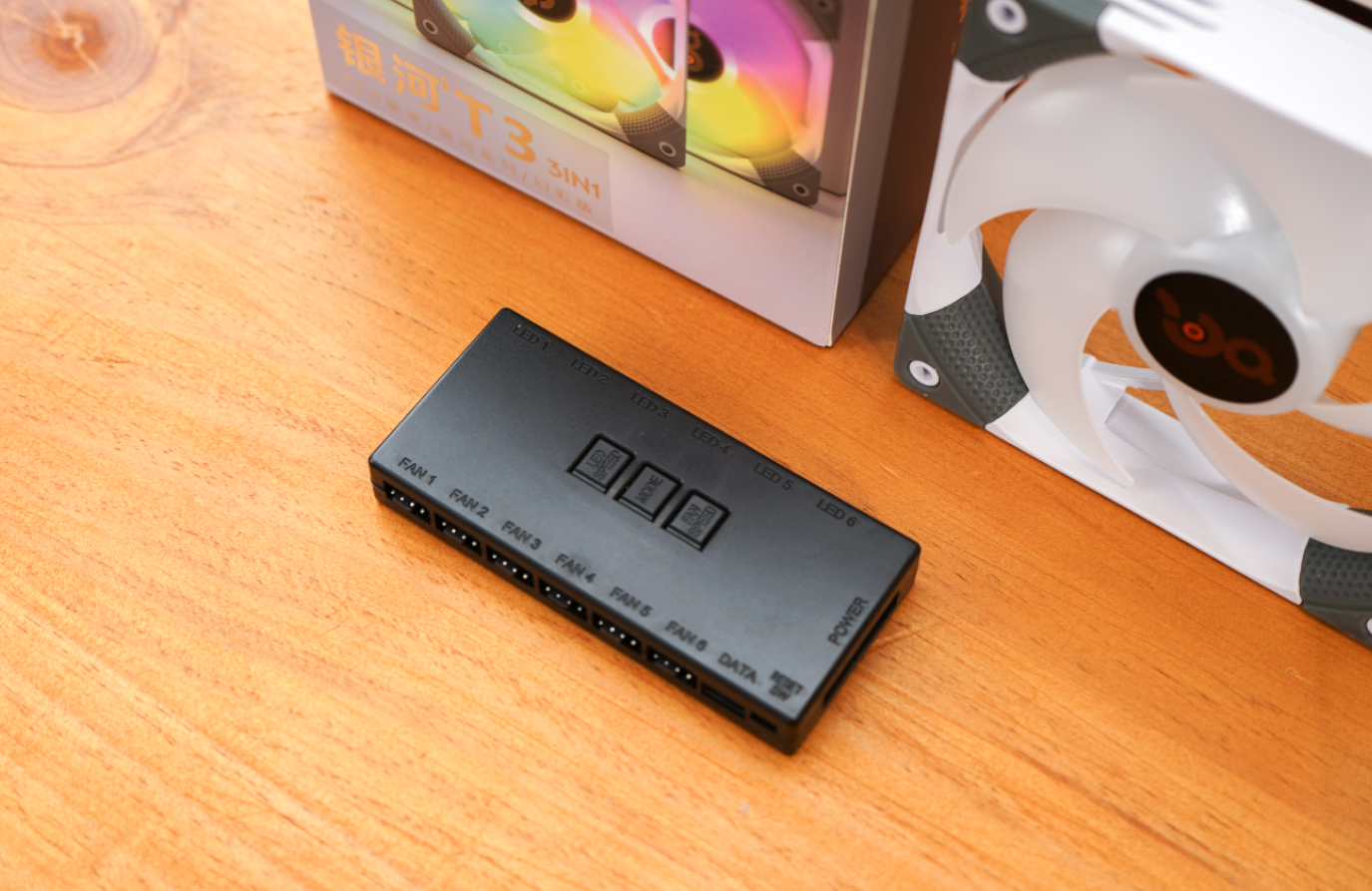这次装机用的风扇是aigo银河T3套装,内含3个120mm的ARGB风扇和一个ARGB控制器。