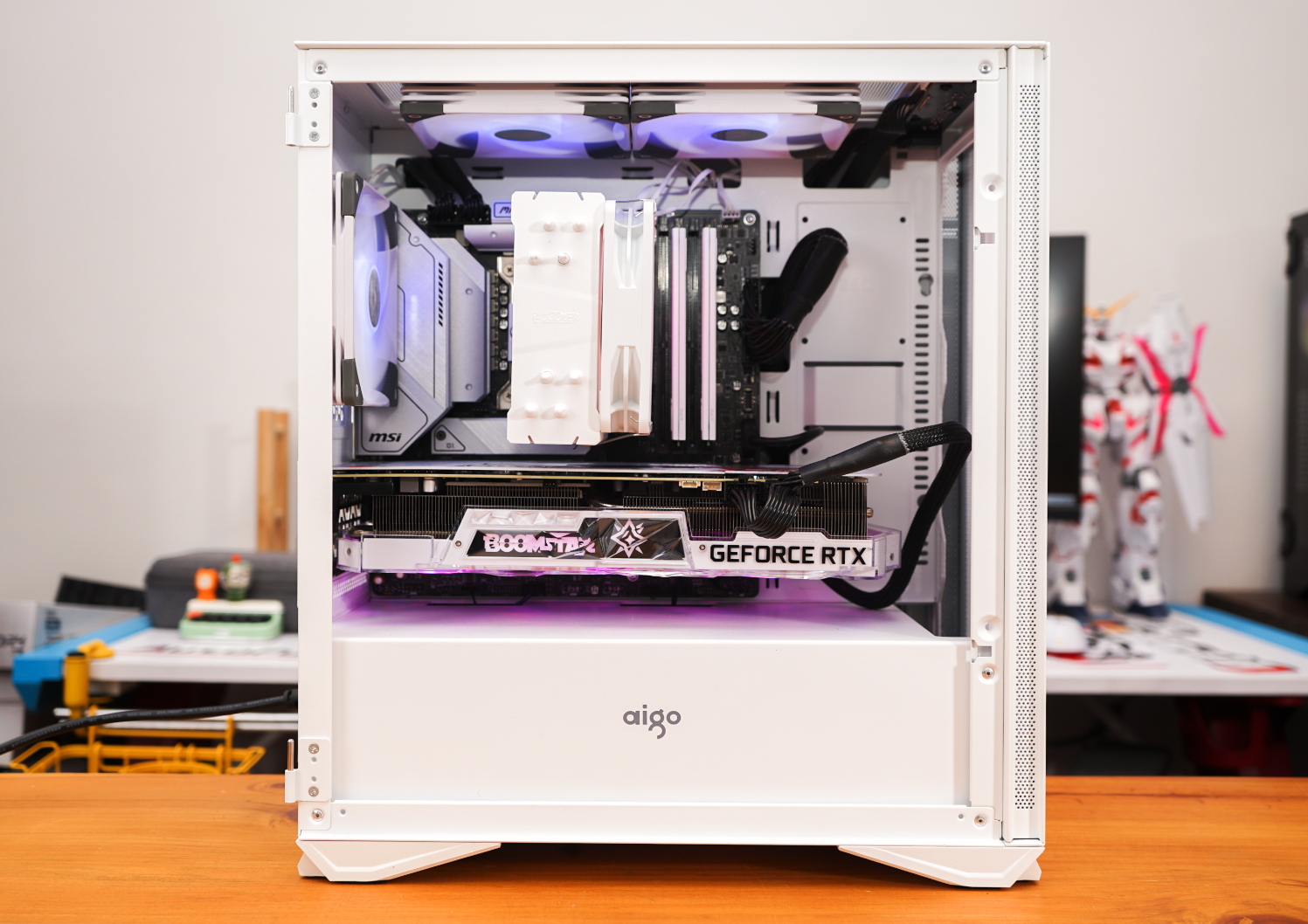 整机安装完毕状态。本来打算给前面板也装好风扇,但发现会干扰到影驰RTX3070Ti永劫无间版显卡的安装。